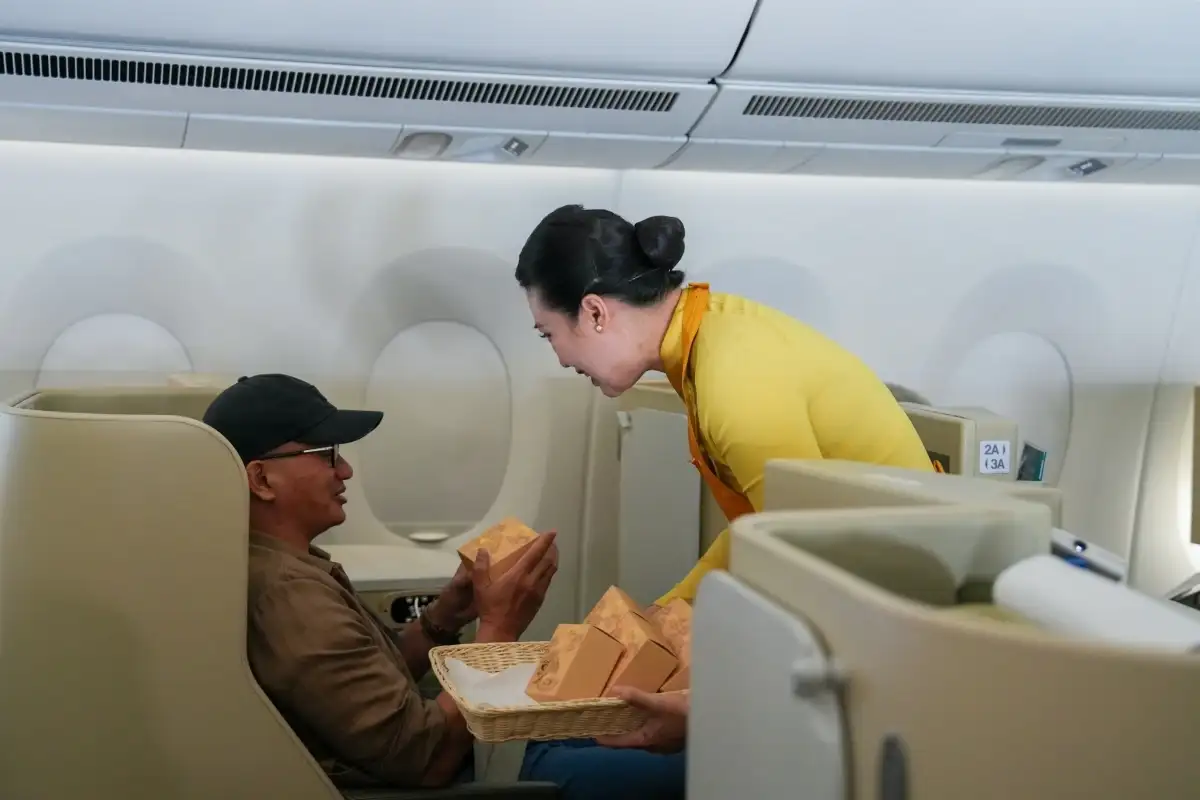Trong khi đó, hành khách hạng phổ thông có thể lựa chọn các hương vị kết hợp giữa truyền thống và hiện đại như trà xanh Ngọc Châu, sen Huế lá dứa, đậu xanh sầu riêng trứng muối…